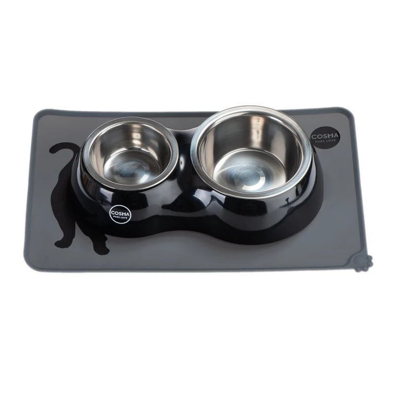 The Cosma Silicone Placemat is a great way to keep your cat’s eating place clean and hygienic. Cats are fastidious creatures by nature and they definitely appreciate a clean eating area where they can enjoy their food. This charming placemat will protect your floor from any food or water spillages and is easy to keep clean. Made from elegant grey silicone, it is decorated with a cute Cosma cat and looks great with the Cosma Dual Feeding bowl. The mat is pliable, non-slip and very easy to keep clean. You can either wipe it down or put it in the dishwasher. The placemat has a slightly raised edge, so any food or water spills are contained.