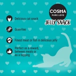 Cosma Soups with chicken, tuna or salmon in a delicate broth is available in cans and pouches and is the tasty way to show your cat how much you love it. These delicious soups are a supplementary food for cats and not only do they taste good, they are also an additional source of liquid.